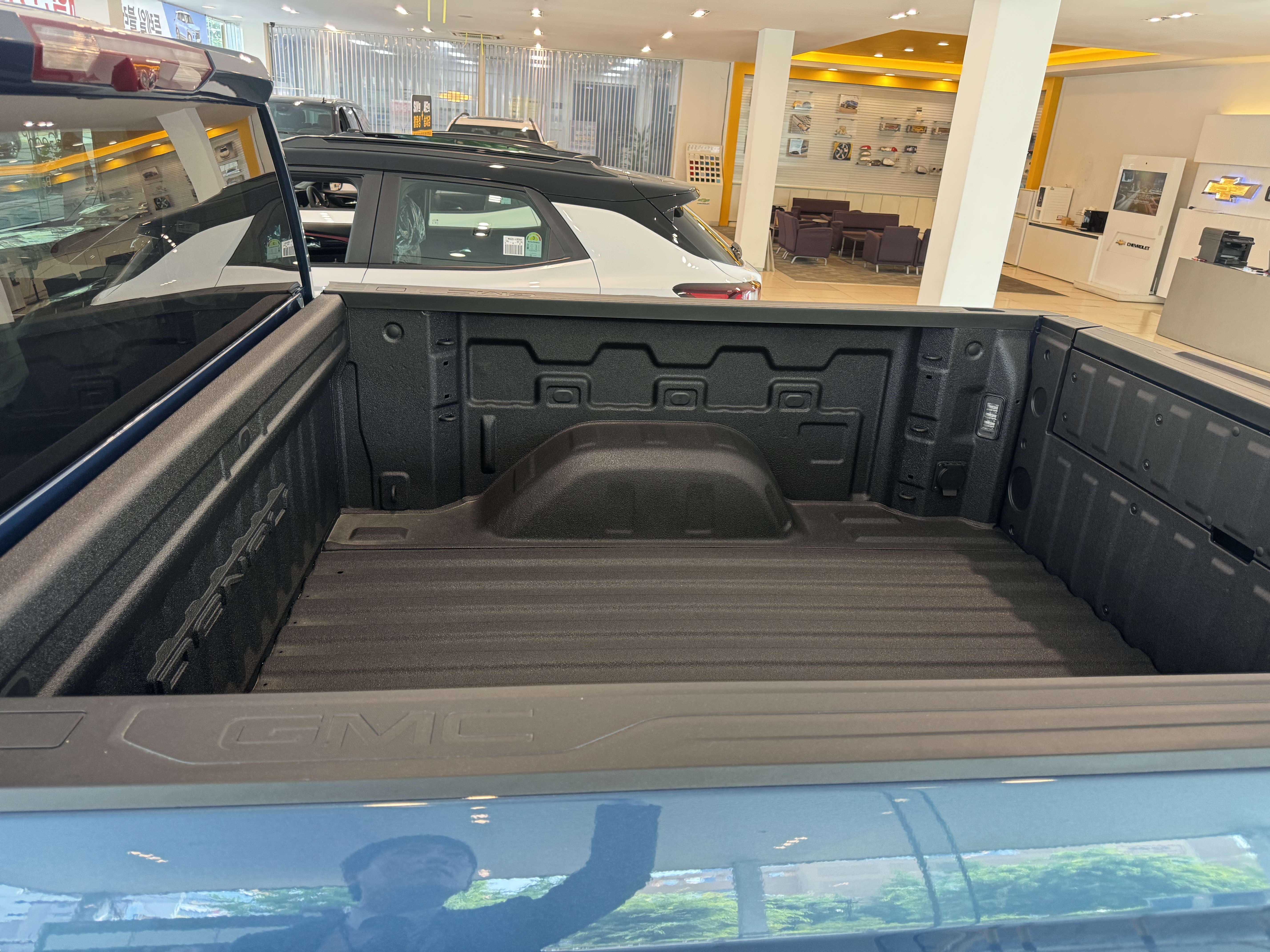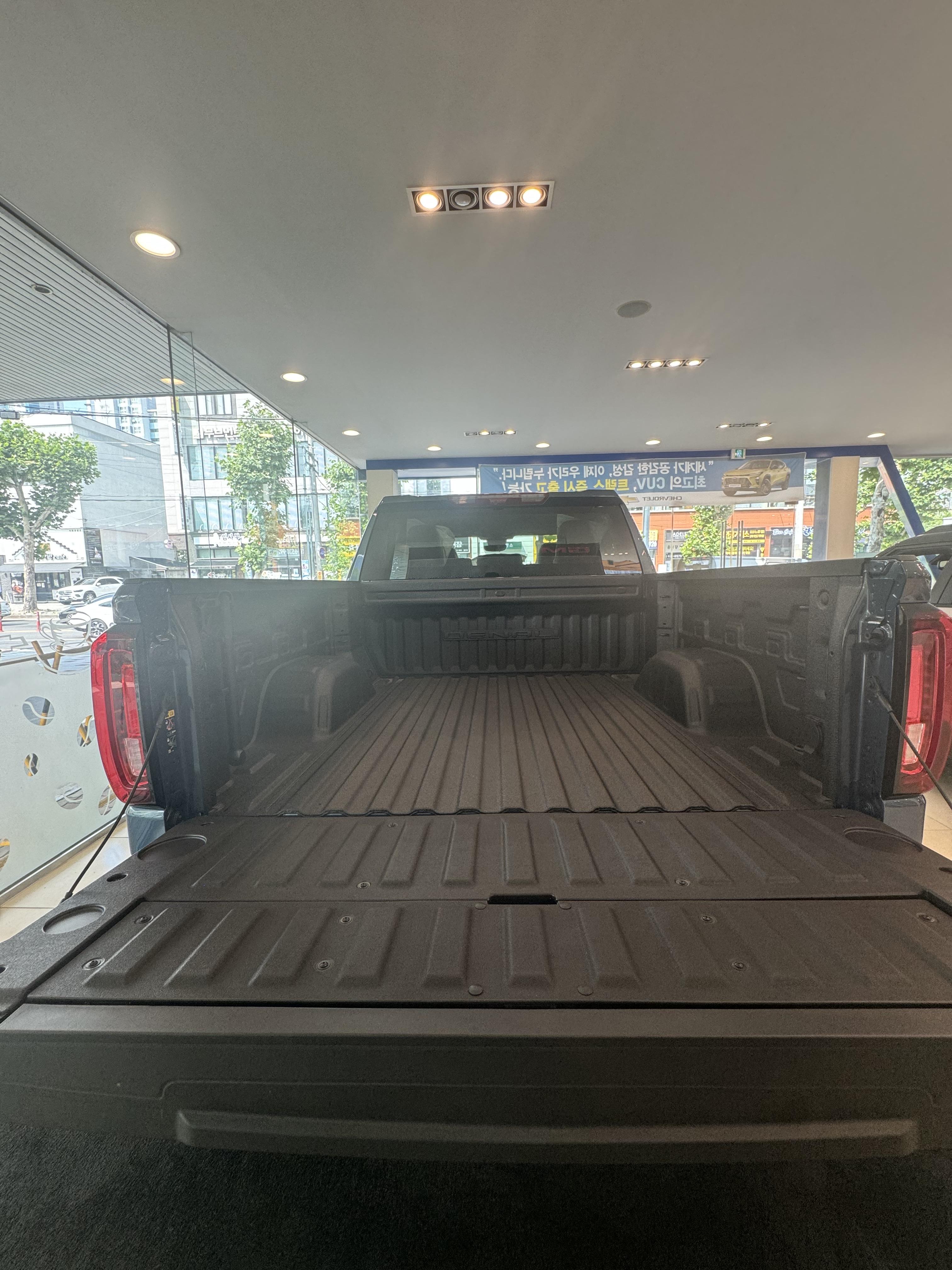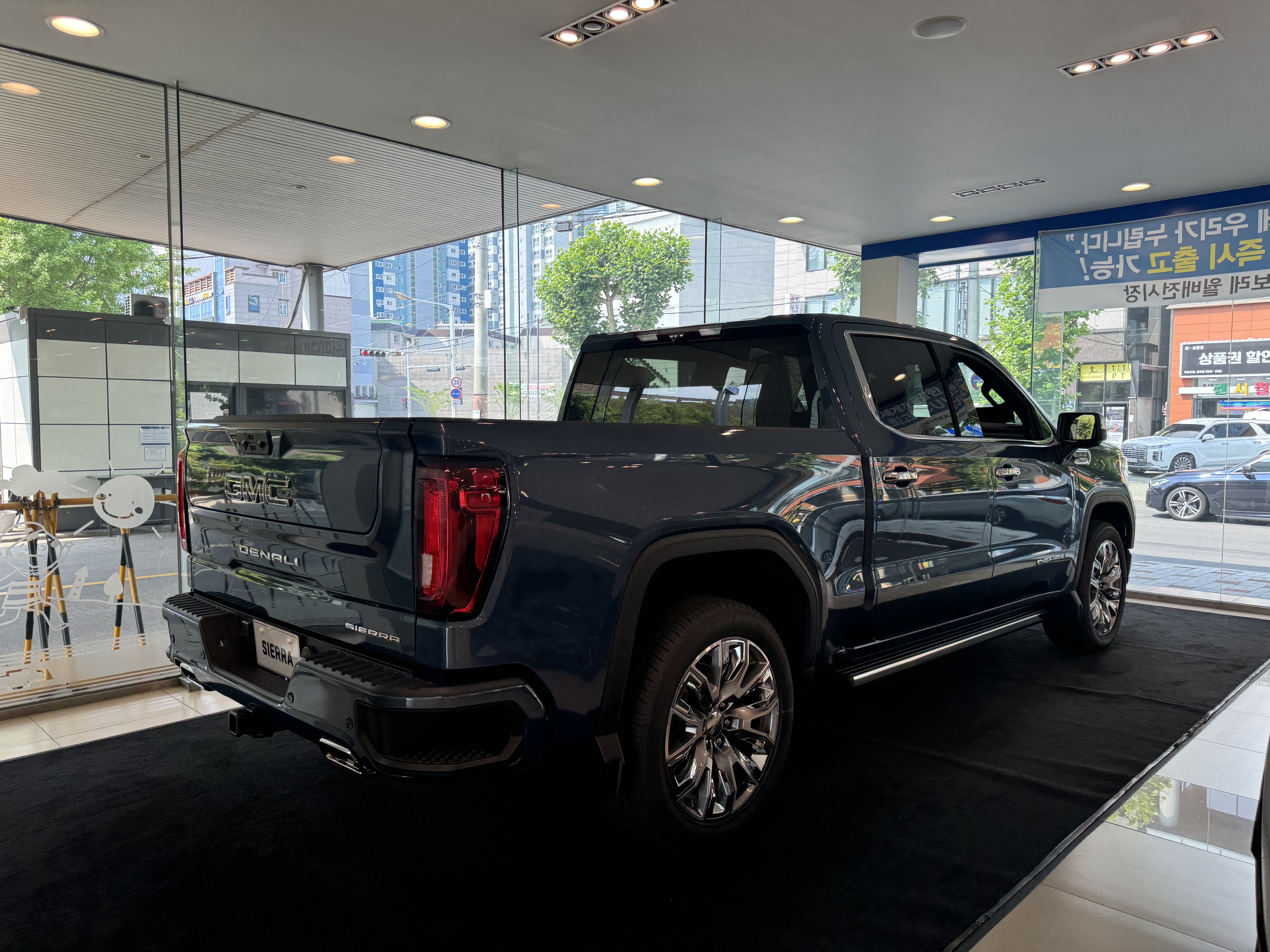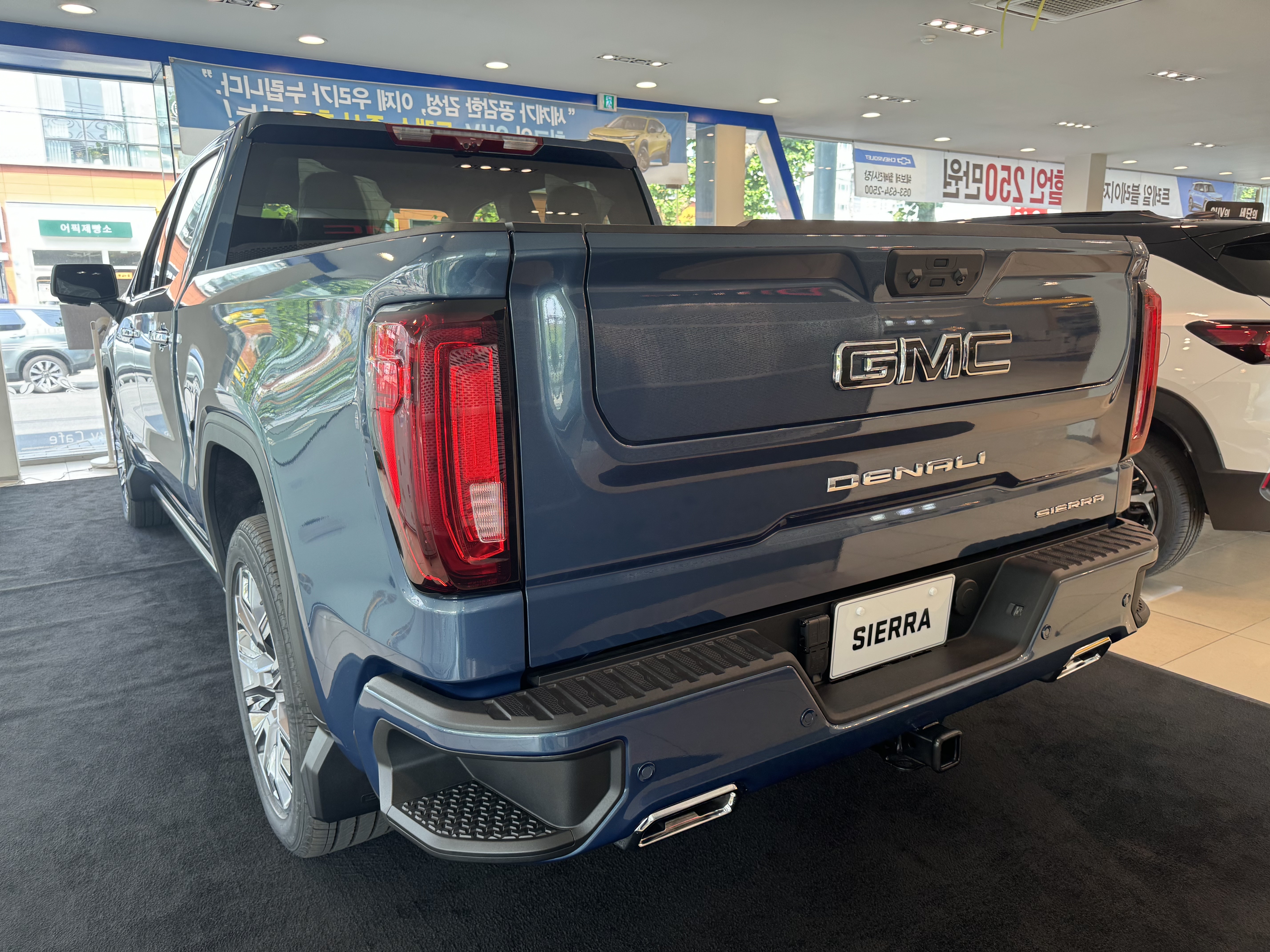 쉐보레 지엠씨 대구 월배 대리점에 새롭게 전시된 시에라 드날리 측면부다.